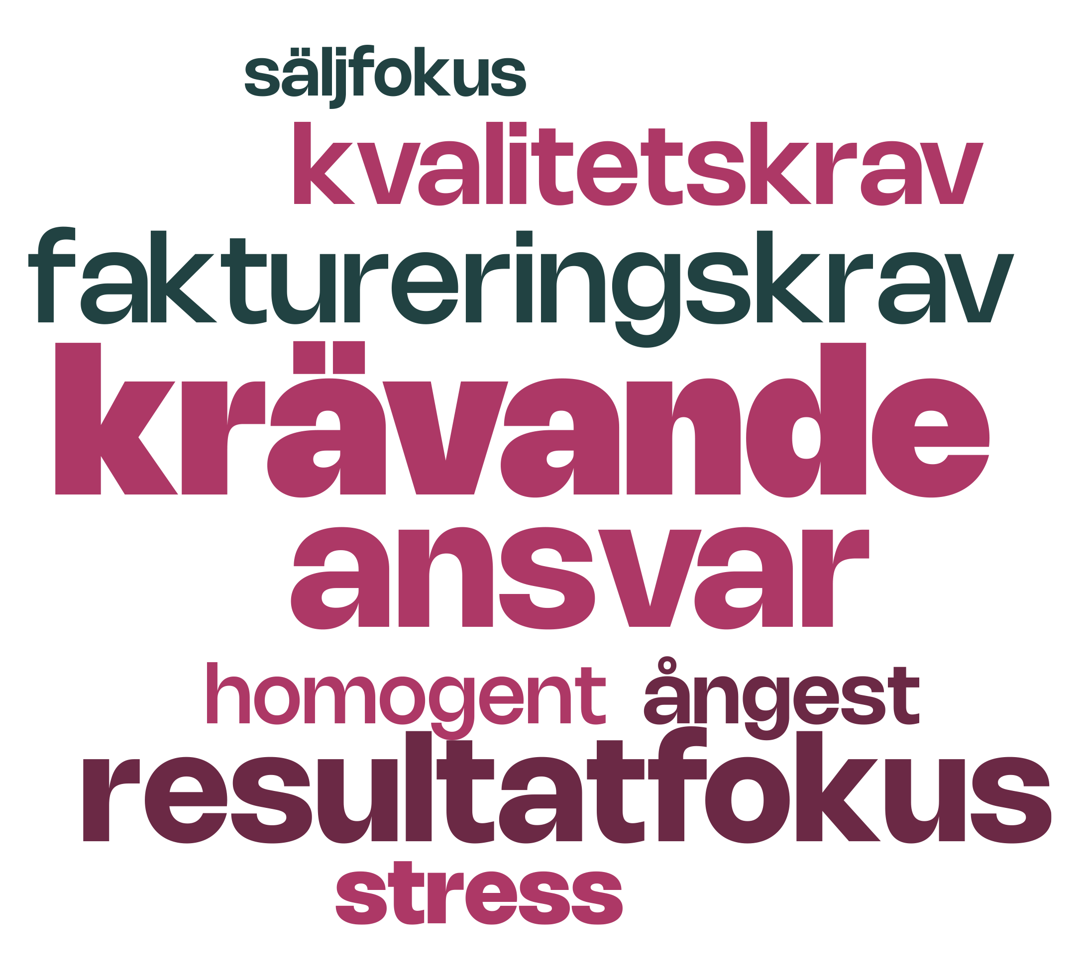 Ordmolnet nedan blev resultatet då Westanders anställda besvarade följande fråga: ”Om du vill avråda en bekant att söka jobb på Westander, vilka tre ord lyfter du då fram om företaget och jobbet som pr-konsult?”
